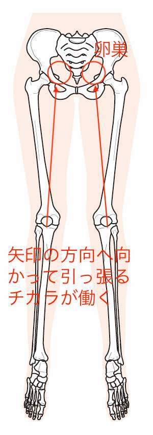 要はどういうことかというと、患者さんの場合は卵巣があった場所に向かって膝関節が引っ張られ、膝が負担の受けやすいような状態になってしまっていたということです。