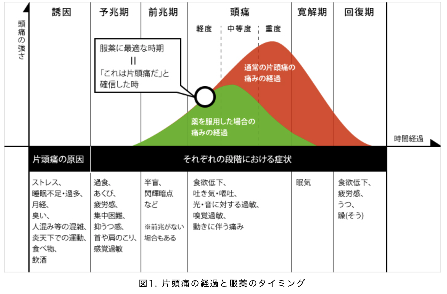 片頭痛では数時間から1~2日前、これから何となく頭痛が起こりそうな気がする「予兆」と呼ばれる症状が5人中1人(約20%)の割合でみられます。具体的には、情緒不安定になる、気分がすぐれない、あくびを繰り返すなどさまざまなものがあります(社会福祉法人恩賜財団済生会のHP参照)。