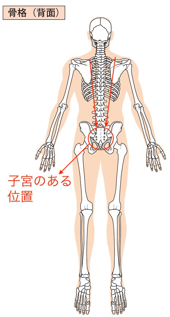 そうすると、仙骨(お尻の真ん中の骨)や背骨が子宮に向かって引っ張られます。