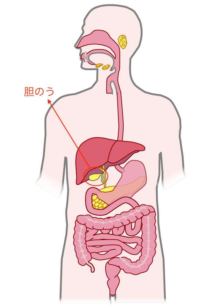 図をご覧いただくと、赤丸で示したところに胆のうがあるのが確認できると思います。