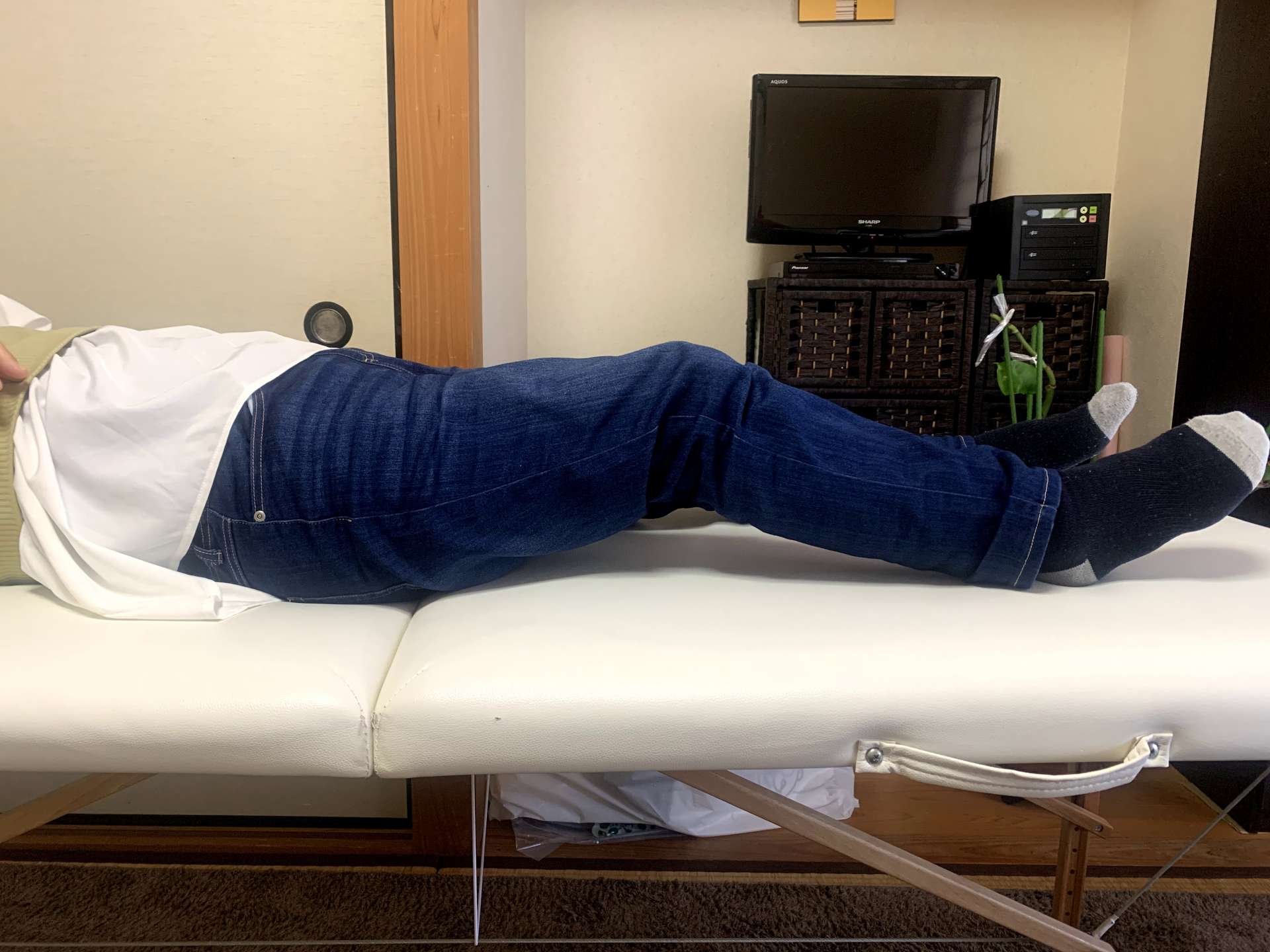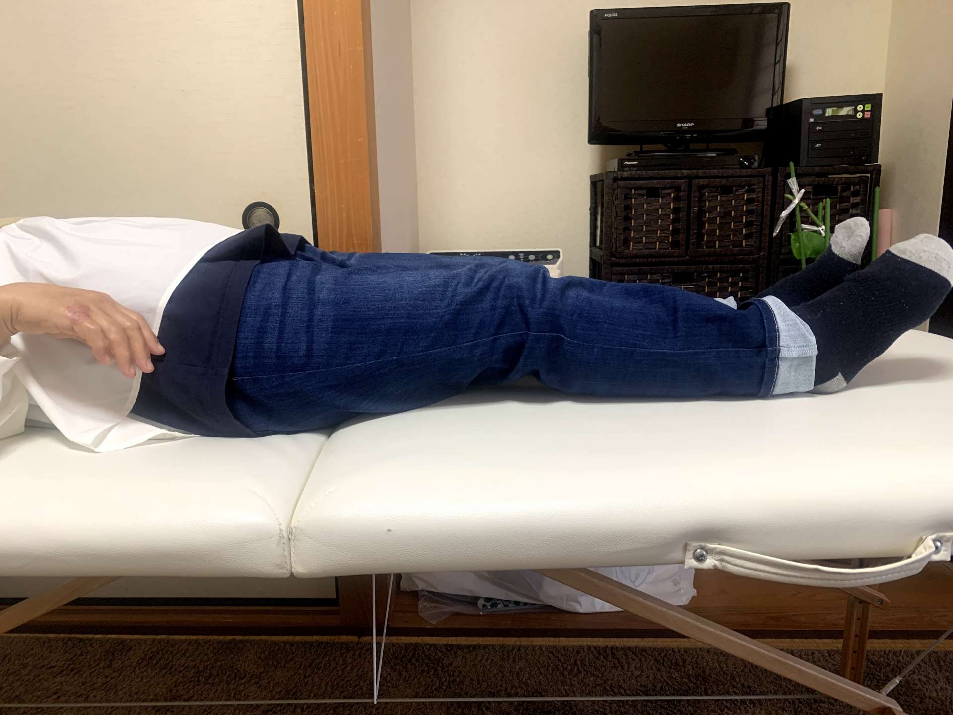 仙骨が歪んでしまっていて、固定化されてしまっているために仰向けで寝ている状態で足が伸ばせない状態でした。