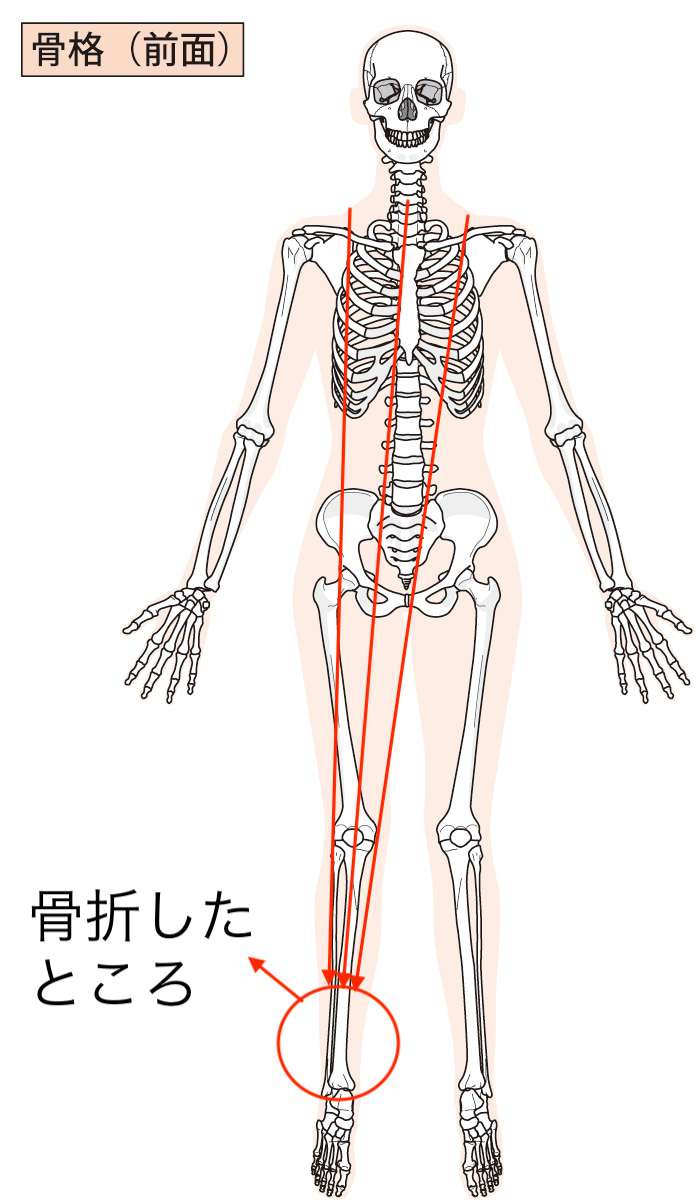 図をご覧いただくとわかると思いますが、足の部分の赤丸したところが、今回ご相談いただいた方が過去に(30年以上前くらい)骨折したという場所になります。