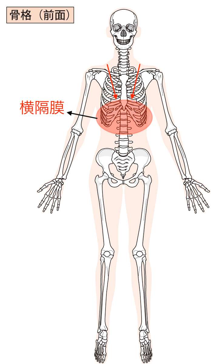 また、先ほどお伝えした胸椎(背骨)の部分にこの横隔膜がくっついているので、その影響もあって胸椎が歪んでいたことがわかりました。