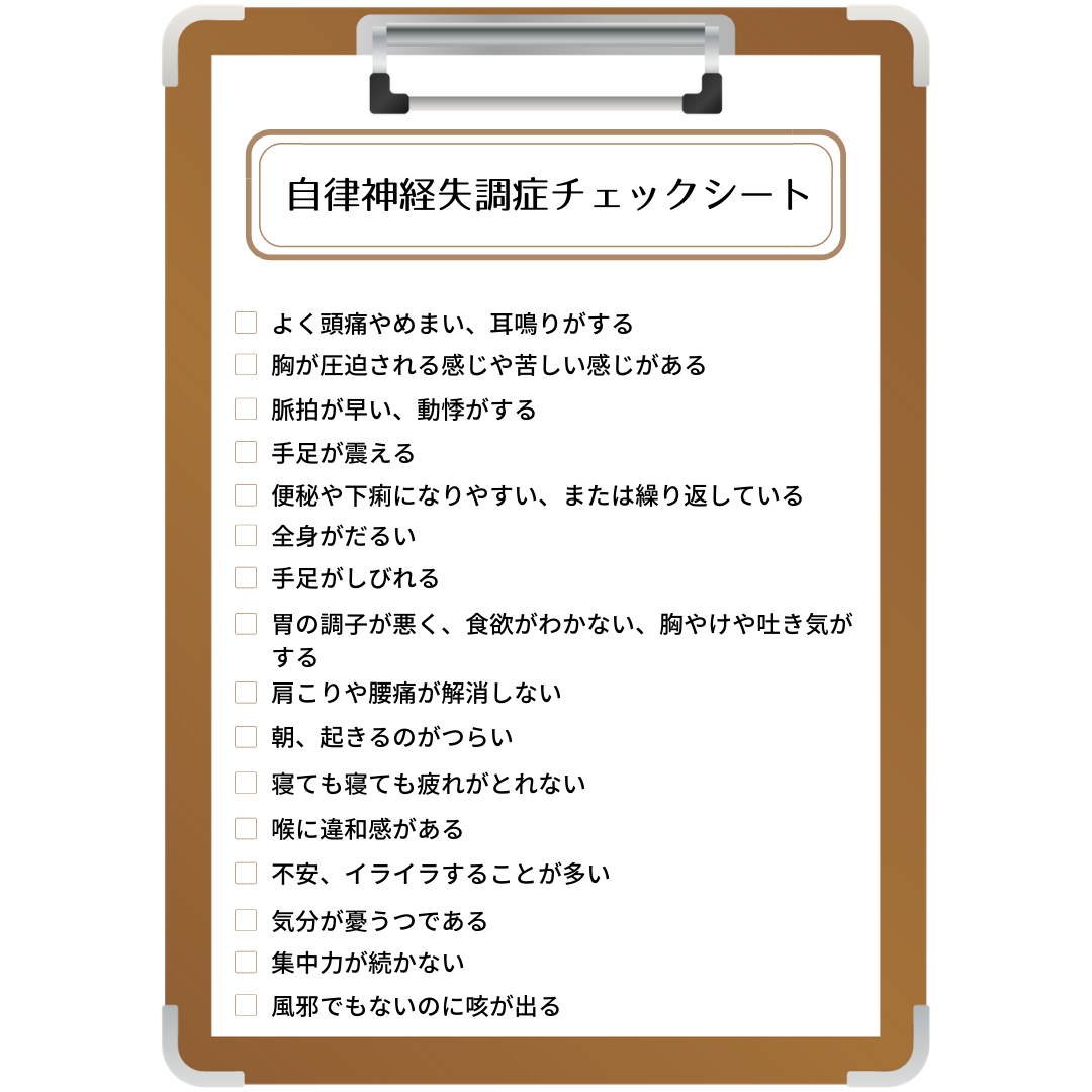 今日、自律神経失調症チェックシートに当てはまった項目がある方は、ぜひご相談くださいませ。