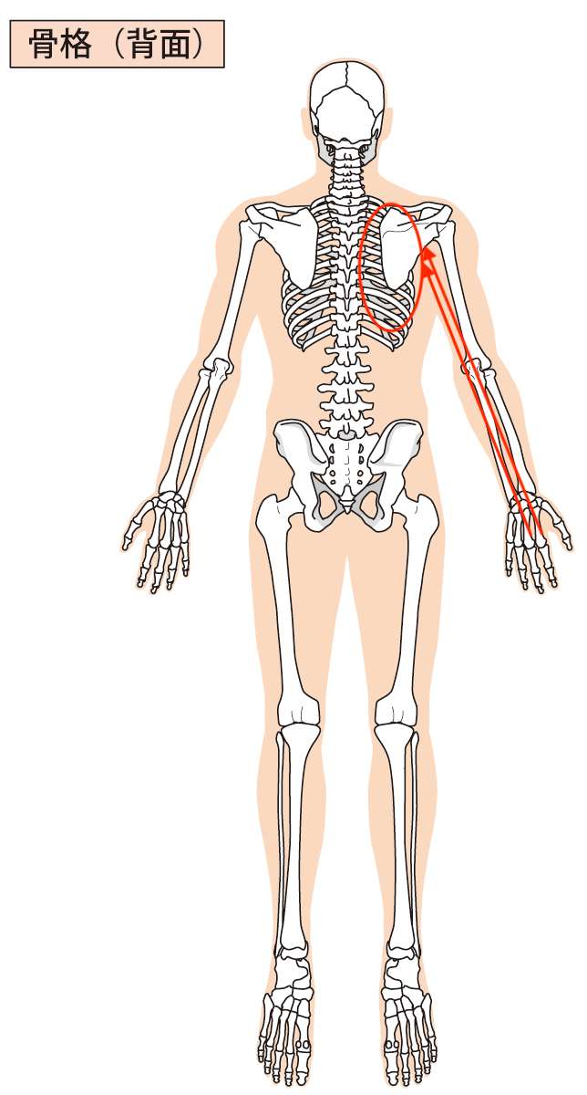 腕や指まで伸びていく神経や筋肉は、肩甲骨を通過していきます。